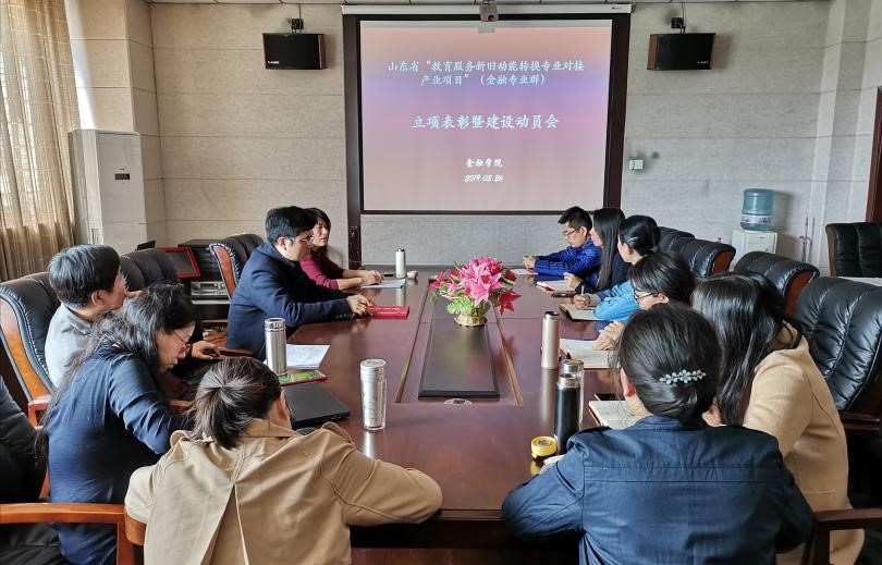 (通讯员:李霞)3月26日下午,yl88858永利集团在第三会议室召开了山东省“教育服务新旧动能转换专业对接产业项目”(金融专业群)立项表彰暨建设动员会。会议由冯玉梅副院长主持,彭红枫院长、各系主任和副主任参加会议。