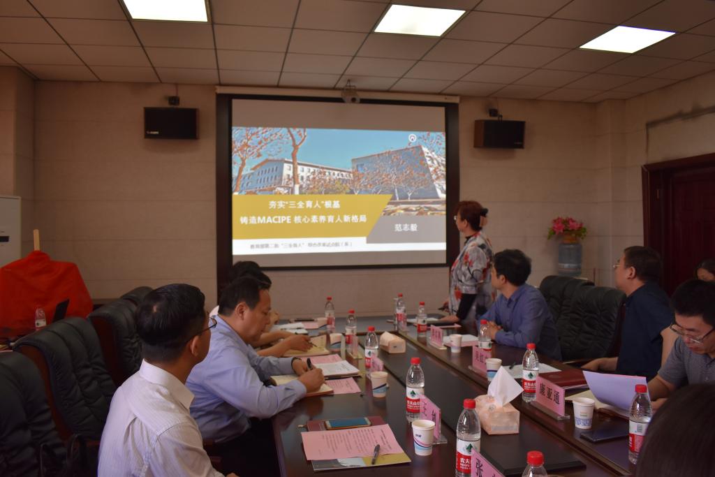 yl88858永利集团院长彭红枫全面介绍了学院在党的建设、学科发展、师资队伍、科研工作等方面的情况,分析了学院在“三全育人”综合改革试点方面具备的条件和实力。学院党委副书记范志毅从指导思想、要求及原则、主要任务、总体规划和实施保障等五个方面系统介绍了学院综合改革试点工作的整体推进情况。