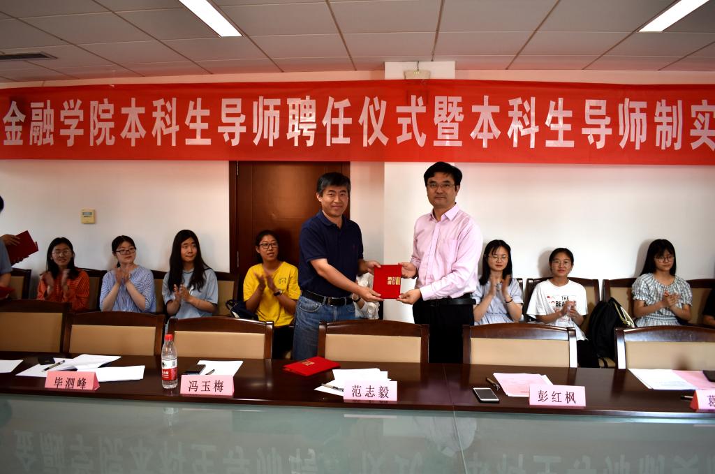 会上,范志毅介绍了本科生导师制实施的基本情况及导师职责,希望同学们充分利用导师资源,主动与导师对接,助力自身发展。冯玉梅宣读了担任本科生导师的17位教师名单,她指出配备的导师是具有突出教学成果和学术成就的教育骨干力量,能够为同学们提供学业、学术、职业生涯导航等多方面的指导。随后,彭红枫院长从五个方面阐述了实行本科生导师制的原因及教育意义,表达了本科生导师制能在我院得到良好实施的信心。最后,彭红枫为本科生导师代表颁发了聘任证书。2018级金融创新实验班班长杨铁城作为学生代表发言,通过切身体会,表达了对拥有学术导师的期待,同时也表达了同学们对实行本科生导师制的认同与感谢。最后,同学们与自己预选的导师进行深入交流互动,增进了彼此的了解,并合影留念。