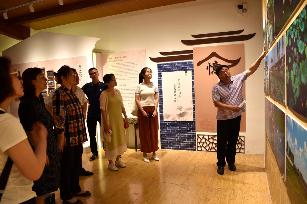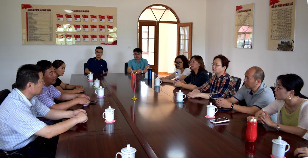 工作室成员在施家崖村委会与张书记举行座谈,座谈会上张书记表示村里按照“支部+合作社+基地+农户”的模式,不断强化党支部管理和考核,成立了农村合作社、实行股份制和土地流转,让施家崖村不但有荷花飘香,更有蔬菜瓜果遍地的景象,现有白莲藕350亩,年产优质白莲藕800吨,产值1000万元;有成熟期果园200亩,内有苹果、核桃、葡萄、桃等多种经济作物,建设了2公里的蔬菜景观长廊,观光道路、停车场和餐饮服务等设施齐全。张书记以习近平总书记在山东考察时的讲话为激励,坚持“说一千、道一万,增加农民收入是关键”建设目标,带领村民从人均年收入1万增长到3万,村集体年收入从无到有,现年收入50余万。不仅如此村里还单列扶贫帮困基金、饮水补贴、春节中秋发放钱物、对高龄老人发放生活补助等方式惠及广大群众。在此基础上建设党群服务中心、幸福院、日间照料中心、中心卫生所、乡村大舞台、群众活动室等配套设施,开展文明创建活动,成为党员群众凝心聚力的阵地堡垒,使村民切实感受到发展建设的成果。