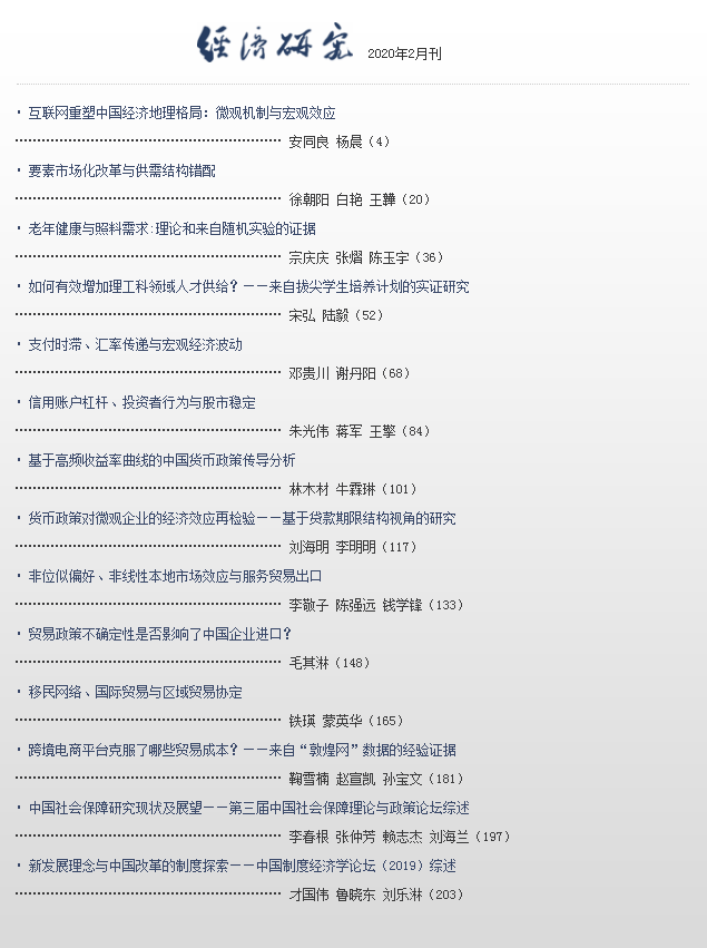 近日,山财大yl88858永利集团青年教师刘海明、李明明合作撰写的论文《货币政策对微观企业的经济效应再检验——基于贷款期限结构视角的研究》在《经济研究》2020年第2期上发表。