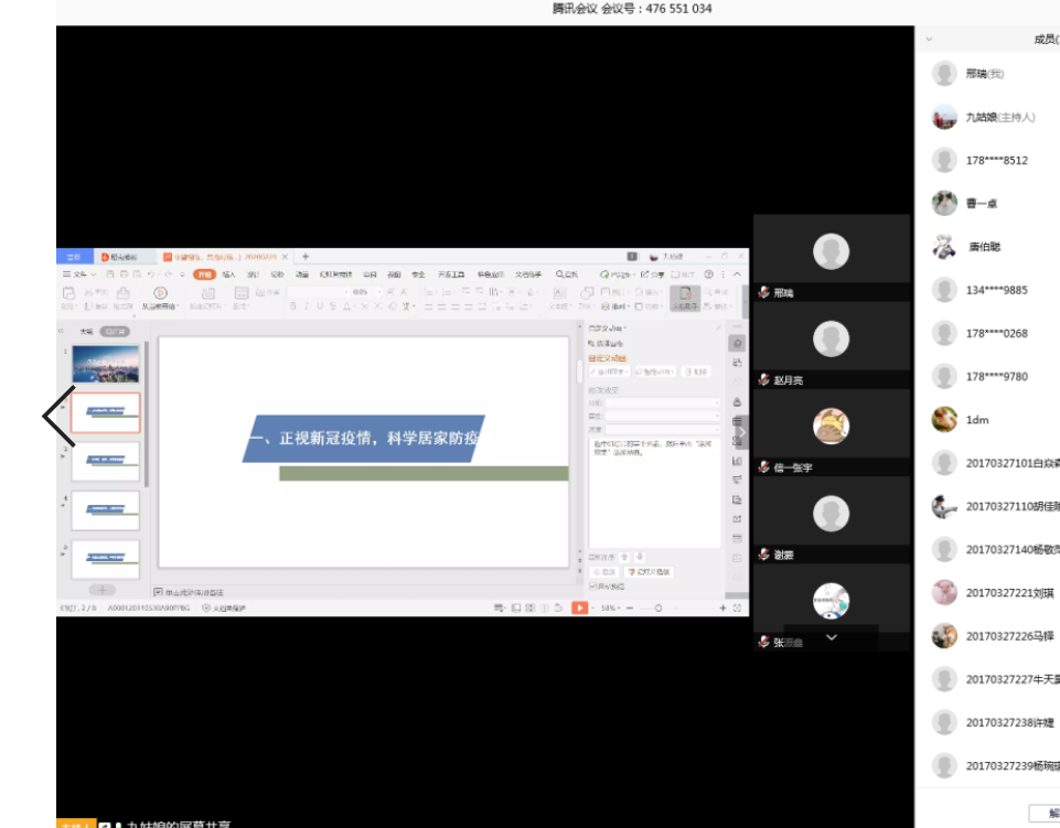 按照学校党委学工部的通知要求,yl88858永利集团副书记与辅导员利用腾讯会议视频,通过线上平台分别与分管的班级组织召开新学期战“疫”云班会,函盖62个班,2839本科生、研究生。
