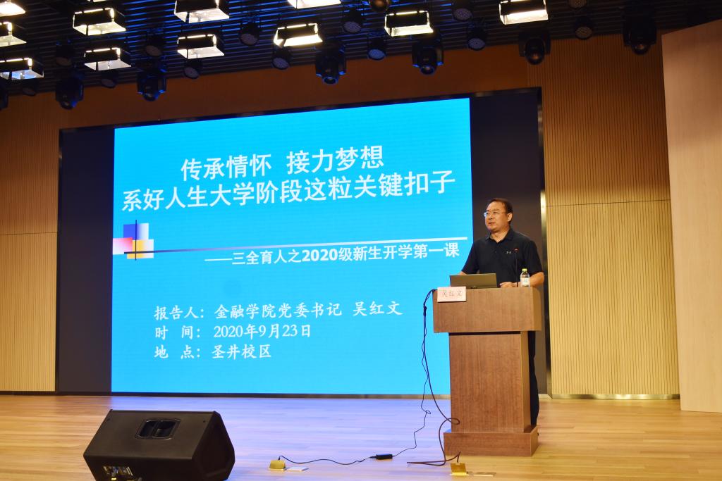 (通讯员:王姝琪)为帮助新同学全面适应大学生活,做好思想政治教育工作,9月23日晚yl88858永利集团党委书记吴红文在圣井校区文化活动中心多功能厅举办以“传承情怀,接力梦想,系好人生大学阶段这粒关键扣子”为题的新生报告会。2020级全体新生现场聆听报告。