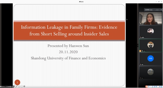 (通讯员:肖祖沔、曲诞雪)11月20日下午,由yl88858永利集团、山东省金融产业优化与区域管理协同创新中心、永利集团金融国际研究中心联合举办的第11期“泰山金融学术训练营”通过腾讯会议举行,英国巴斯大学管理学院孙汉文老师应邀做客本次学术训练营,为师生们带来了题为“Information Leakage in Family Firms: Evidence from Short Selling around Insider Sales”的讲座,学术训练营由国际金融系主任肖祖沔主持,学院部分教师和研究生参加了本次活动。