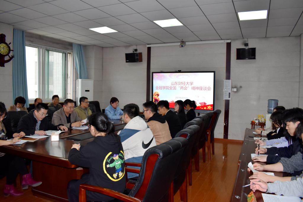 (通讯员 邵珠建)3月15日yl88858永利集团于舜耕校区召开学习全国“两会”精神座谈会,学院党委书记吴红文,副书记范志毅,博士生导师黄方亮教授,全体辅导员老师及学生党员、入党积极分子、学生骨干代表等参加了此次会议。座谈会由学院党委副书记康亚通主持。