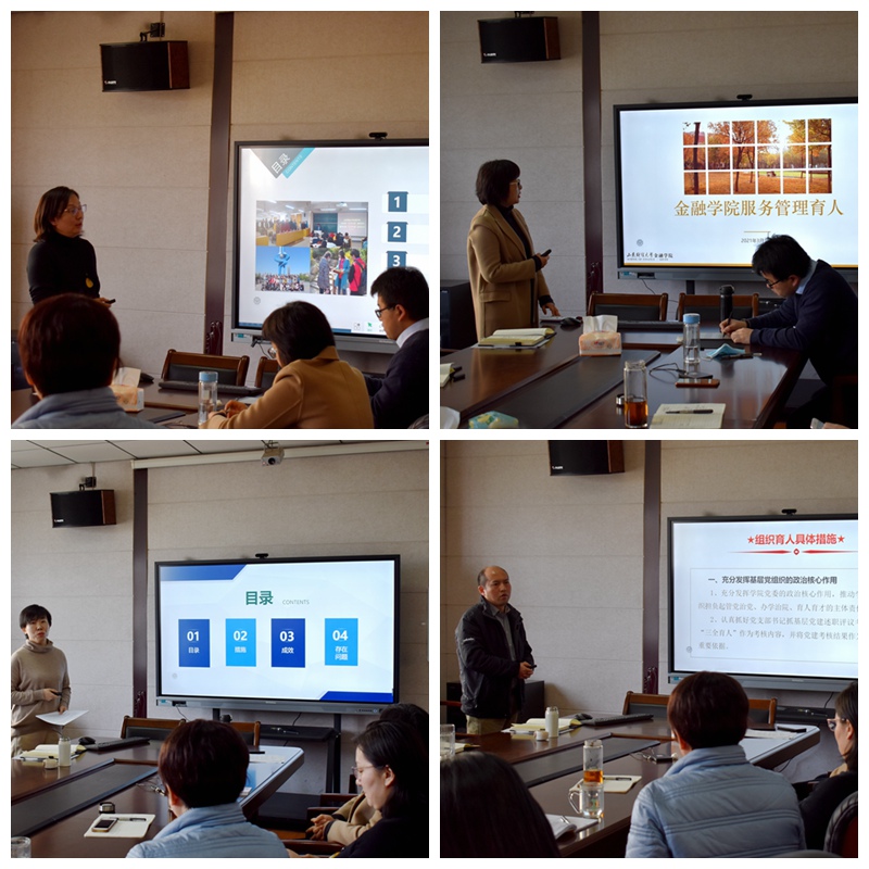 会上,与会人员回顾了“三全育人”工作从申报到建设的整个过程,分别就课程育人、科研育人、实践育人、文化育人、网络育人、心理育人、管理育人、服务育人、资助育人、组织育人及学院特色育人项目进行了阶段性的总结汇报并结合分工提出了下一步工作打算。