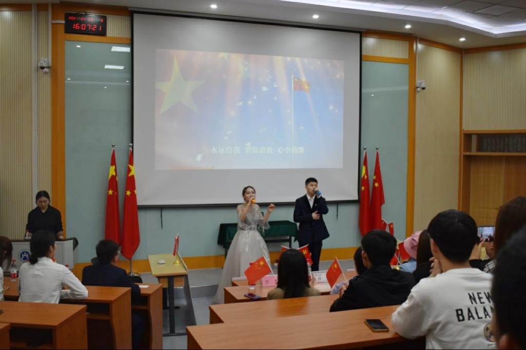 此次知识竞赛以学习党史为重点,包含新中国史、改革开放史、社会主义发展史等相关内容。比赛分为“红色开端”、“党旗飘扬”、“历史留声”、“战略大反攻”四个环节,充分考验了同学的党史知识储备、现场反应能力和团队协作能力。“红色开端”环节,每队按抽签顺序在英雄篇、复兴篇、创新篇和信念篇四个篇章中选择一个篇章作答,选手们精神饱满,从容作答,展现了充足的党史知识储备。“党旗飘扬”、“历史留声”两个环节要求各参赛队在限定的时间内进行抢答,比赛进入白热化状态,各队你追我赶,互不示弱。答题激烈之时,现场响起了阵阵掌声。中场休息环节,周晗同学献上《唱支山歌给党听》,邓媛、于龙洲同学合唱《我和我的祖国》,悠扬的旋律带领师生走进那一段段红色的回忆,感受到革命先烈们对祖国的一腔热血。最后的“战略大反攻”环节,题型分为高中低三类难度题,难度越高分值越大,各队均有可能在本环节“翻盘”。参赛队按照积分顺序选择题目并作答,将比赛引向高潮。经过四轮比赛的激烈角逐,各支队伍均展现出了不凡的实力,最终“人民当家做主”队获得了本次竞赛的总冠军。
