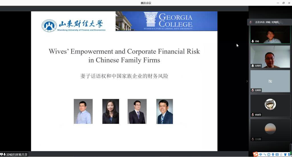 (通讯员:刘海明、曲诞雪)5月13日上午,由yl88858永利集团、山东省金融产业优化与区域管理协同创新中心、永利集团金融国际研究中心联合举办的第22期“泰山金融学术训练营”通过腾讯会议举行,美国Georgia College & State University金融学终身教授凌崚老师应邀做客本次学术训练营,为师生们带来了题为“Wives’ Empowerment and Corporate Financial Risk in Chinese Family Firms”的讲座,学术训练营由金融工程系刘海明教授主持,学院部分教师和研究生参加了本次活动。