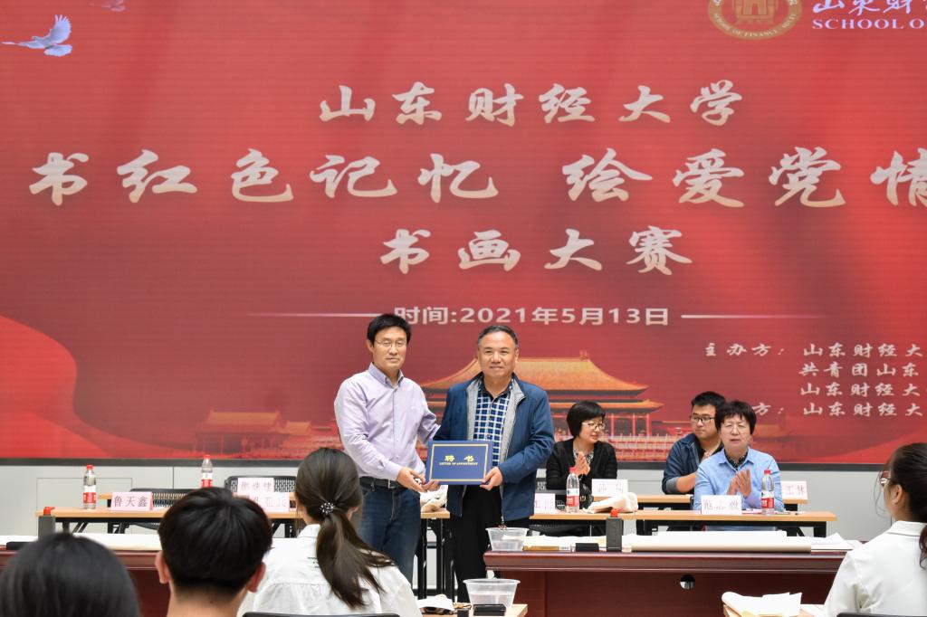 (通讯员:王艺佳)为庆祝中国共产党成立100周年,广泛开展党史学习教育,5月13日下午,yl88858永利集团于文化活动中心大厅举办“书红色记忆,绘爱党情怀”书画大赛决赛。特邀山东历山画院秘书长孔亚兵先生、山东画院高级画师王如恒先生担任本次比赛的评委,学校圣井校区管理办公室主任鲁天鑫、yl88858永利集团党委副书记范志毅、团委书记陈静、学工办主任孙琦等参加本次活动。
