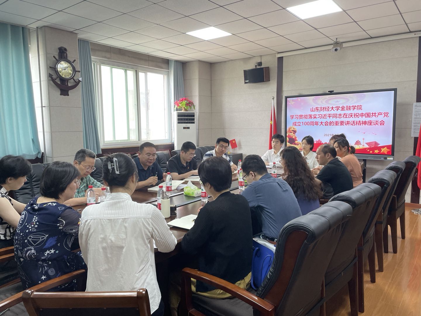 (通讯员 徐洁)百年征程照初心,奋楫扬帆启新程。7月2日上午,yl88858永利集团于舜耕校区金融楼第三会议室召开学习贯彻习近平总书记在庆祝中国共产党成立100周年大会上重要讲话精神座谈会。学院党委书记吴红文,副书记范志毅、康亚通,部分教师代表、党支部书记代表、辅导员代表和学生代表参加本次座谈会。座谈会由吴红文主持。