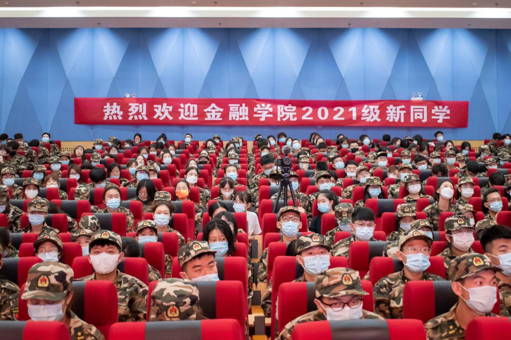最后,学院党委书记吴红文在讲话中向大家介绍了今年新生录取的总体情况及学院各项工作的开展情况。对2021级新生提出六项要求,一是坚持“一个主题”,即要为中华民族伟大复兴而努力,坚持立德树人根本目标,为改革开放和社会主义现代化建设服务。二是做到“两个维护”,即坚决维护习近平总书记党中央的核心、全党的核心地位,坚决维护党中央权威和集中统一领导。三是拥有“三个气度”,增强志气,坚持理想信念,理想上要有高度;增强底气,树立必胜信心,专业上要有厚度;增强骨气,保持政治操守,干事上要有力度。练得钢筋铁骨,守得身心清白。四是建设“四个品牌”,积极建设品牌学院、品牌学科、品牌老师、品牌学生。五是坚持“五个标准”,对学习有初心;对党有忠心;对他人有关心;对社会有爱心;对自己有信心。六是突出“六个重点”,要在坚定理想信念上下功夫、要在厚植爱国主义情怀上下功夫、要在加强品德修养上下功夫、要在增长知识见识上下功夫、要在培养奋斗精神上下功夫、要在增强综合素质上下功夫。他希望同学们能够在大学新生活中做好学生、公民、子女等多重角色,努力成长为德智体美劳全面发展的新时代卓越金融人才。