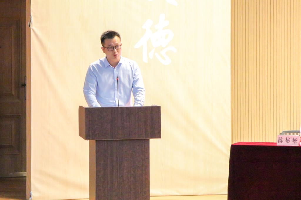 随后,教师代表陈彬彬老师结合自己的求学和工作经历告诉同学们要学会主动思考、独立思考,尤其是要具有批判性思维。要多关注国家大事、社会思政热点,充分利用学校平台参加科研项目、比赛、实践活动等,充实大学四年时光。路虽远,行则必至。希望同学们树立宏大的抱负,在实现自我价值的同时为中华民族伟大复兴的中国梦而努力奋斗。