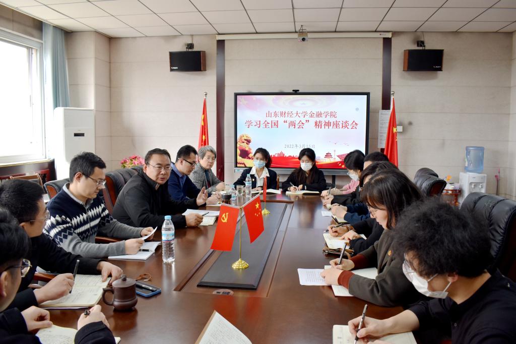 会上,国际金融系主任肖祖沔博士从金融风险化解、绿色金融发展、金融科技等方面分享了学习体会;博士后代表刘建建分享了在宏观经济稳增长领域的学习和研究;范志毅指出要结合学院三全育人建设,发挥家校合力,进一步提升思政工作的精细化水平;康亚通结合学生工作实践,认为代表们积极为民代言,倾心为民办事,情系百姓冷暖,切实发挥了人民民主;团委书记陈静表示党有号召,团有行动,学院团委将继续巩固党史学习教育成果,常态化开展实践思政工作;研究生辅导员许静就疫情防控与学生管理方面谈了工作感受;就业办主任郭夕熙就稳就业、稳民生和新就业形态等分享了个人感悟;党支部书记邵珠建表示,要教育引导大学生增强对社会主义制度优越性的认识,培养学生爱党爱国情怀;博士生代表马永凡、硕士生代表魏娜与宁星博、退伍军人代表赵林、本科学生相德超等分别就金融服务实体经济、制造业转型、促进国家统一、献身西部建设等不同视角交流了学习感悟,纷纷表示将会继续深入学习全国“两会”精神,积极投身全面建设社会主义现代化国家的伟大实践。