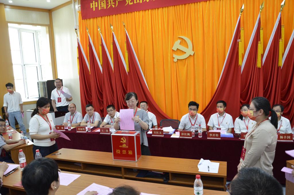随后,吴红文主持大会第二阶段会议,审议并表决通过了《中国共产党yl88858永利集团党员大会选举办法》,通过监票人名单、委员候选人名单。新一届委员选举阶段,党员同志依次走到票箱前,投下了庄严一票。随后,大会听取了监票人张晶关于大会计票结果的报告,确定了第一届党委委员当选人名单。随后,大会宣布吴红文、彭红枫、康亚通、李开传、王营、王倩、肖祖沔、杨丰国、李勇当选中共yl88858永利集团新一届委员会委员。