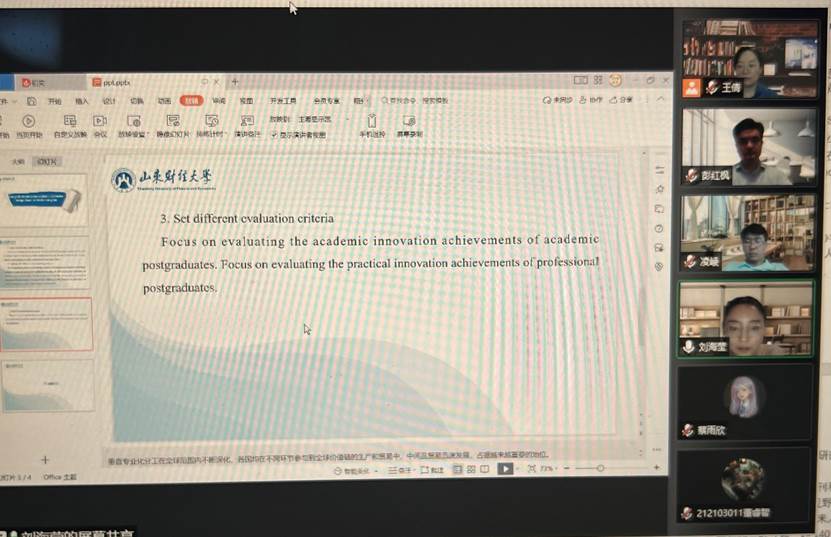 刘海莹同学就永利集团问题提出分类培养,构建具有特色的研究生培养方案的建议,提出学院在培养时需要注重培养学生的不同能力,突出培养课程差异,设置不同的评价标准。