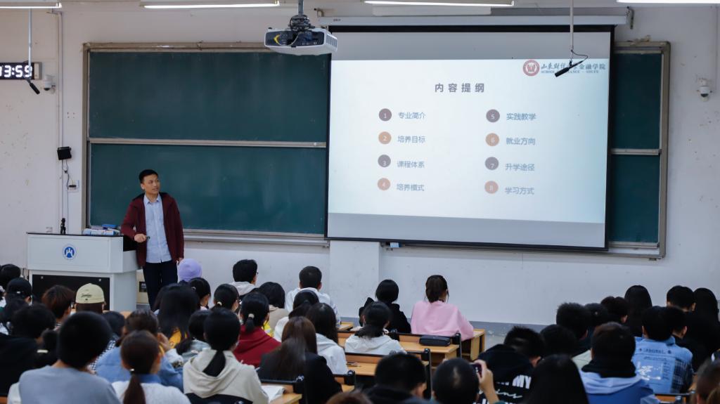 刘立安老师就我院金融工程专业情况做了简单地介绍,并对专业特色与学生升学就业去向展开论述。刘立安老师指出强调,金融工程作为国家级一流和省级特色本科专业,在就业方面有较强的优势。他为同学们提供了大学四年提升自我的多条途径,为同学们指明了未来学习努力的方向。最后通过学生自由提问的方式解答了同学们对于金融工程专业在深造就业方面、专业课、转专业方面的疑惑。