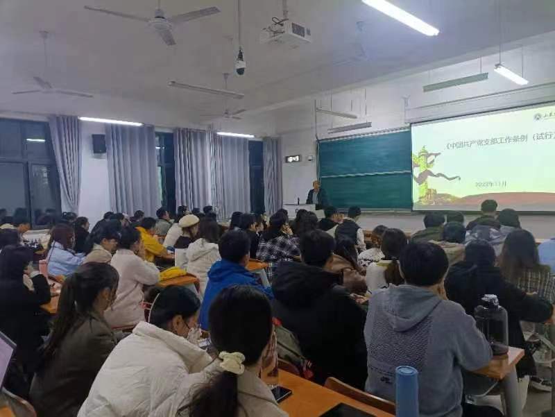 李开传副书记带领大家学习了新修改的《中国共产党章程》,希望同学们在今后的学习和生活中一定要按照党章的规定来严格要求自己,发扬和保持党的先进性,全面提高学习和工作水平。王亚男老师为同学们系统地介绍了党员的发展程序,增进了同学们对入党程序的深入了解。徐洁老师和陈玉林老师则分别以“弘扬爱国主义,争当时代新人”和“为什么只有红色能救中国”为主题展开了精彩授课,让广大党员发展对象们感悟今天生活的幸福,鞭策同学们努力学习奋斗。李勇老师则带领同学们全面系统地学习了党支部工作条例,让发展对象了解组织生活情况。王蕴玮老师对如何做一名合格的党员提出具体要求,希望大家能够发挥模范带头作用,树立踏实肯干的工作作风,服务师生、善于奉献、锤炼党性,争做党员先锋。最后,郭夕熙老师带领同学们学习了党的二十大报告,她带领同学们回顾了建党百年以来的光辉历程和艰辛岁月,畅谈党的建设的伟大成就,增强了同学们爱党爱国热情和使命感。
