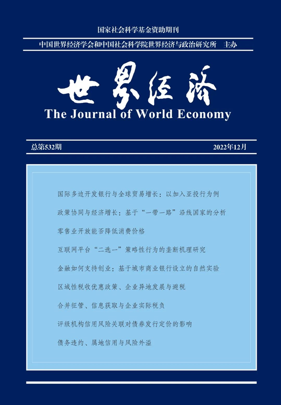 yl88858永利集团彭红枫教授与武汉大学经济与管理学院余静文副教授合作撰写的论文《政策协同与经济增长:基于“一带一路”沿线国家的分析》在《世界经济》2022年第12期发表。该期刊属于我校A1期刊。