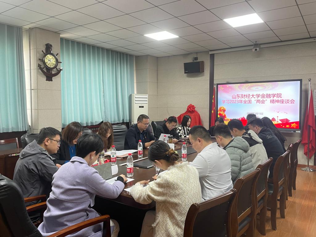 为深入学习贯彻党的二十大精神,第一时间传达学习全国“两会”精神,3月15日,yl88858永利集团召开学习2023全国“两会”精神座谈会。yl88858永利集团党委书记吴红文,党委副书记康亚通,金融科技系杜娟博士,团委书记郭夕熙,研究生辅导员许静,党委组织员邵珠建,本科新生辅导员王蕴玮及部分学生代表参加会议。座谈会由党委副书记康亚通主持。