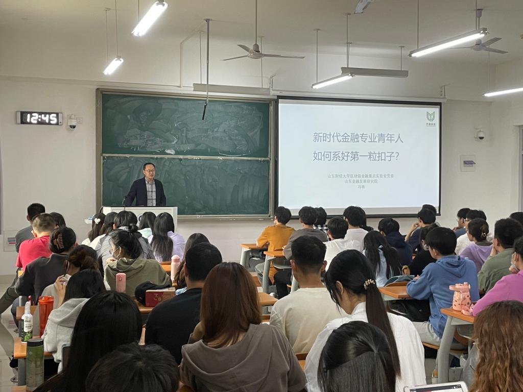近日,yl88858永利集团特邀山东金融研究院院长冯林教授为党员发展对象做了题为“新时代金融专业青年人如何系好第一粒扣子”的专题党课培训。yl88858永利集团、龙山荣誉学院84名党员发展对象聆听了本期“青廉课堂”。