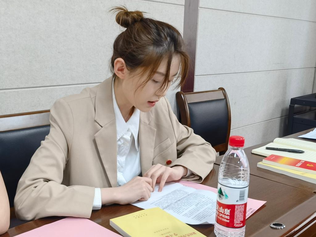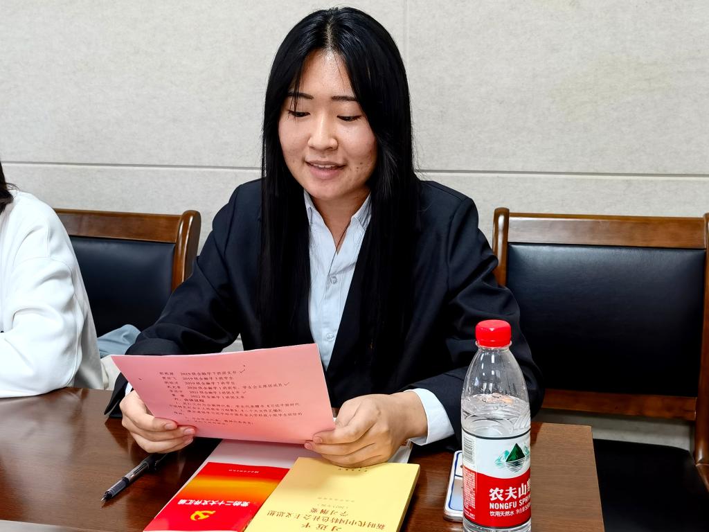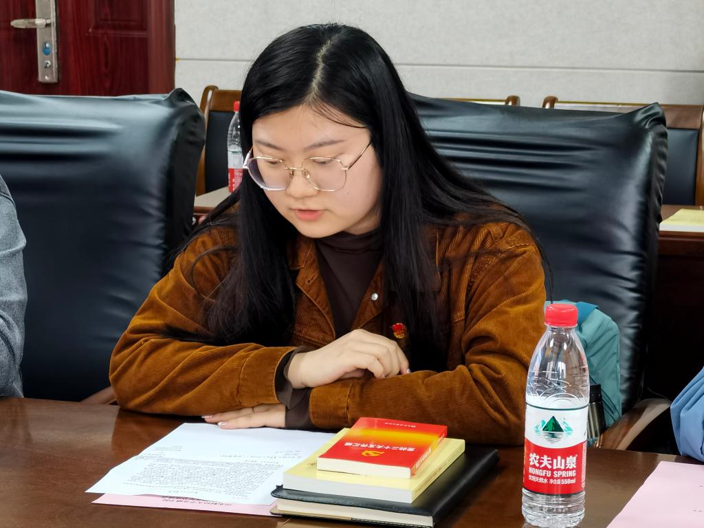 2021级金融学3班团支书李蕊宇分享了去年暑假在基层村委参加的为期两个月的挂职实践经历,从中她对于青年担当的体会愈加深刻。作为青年学生,应该实现“青春三色”:淬炼初心“本色”、坚定奋斗“底色”、赓续使命“红色”。作为青年学生干部,应该做到“三个明白”:学得明白、想得明白、干得明白。时代、国家、青年,是形影相随的铁三角,彼此助推的浪潮。中国青年与伟大时代“双向奔赴”,必将进一步汇聚起推动时代前行的磅礴力量。
