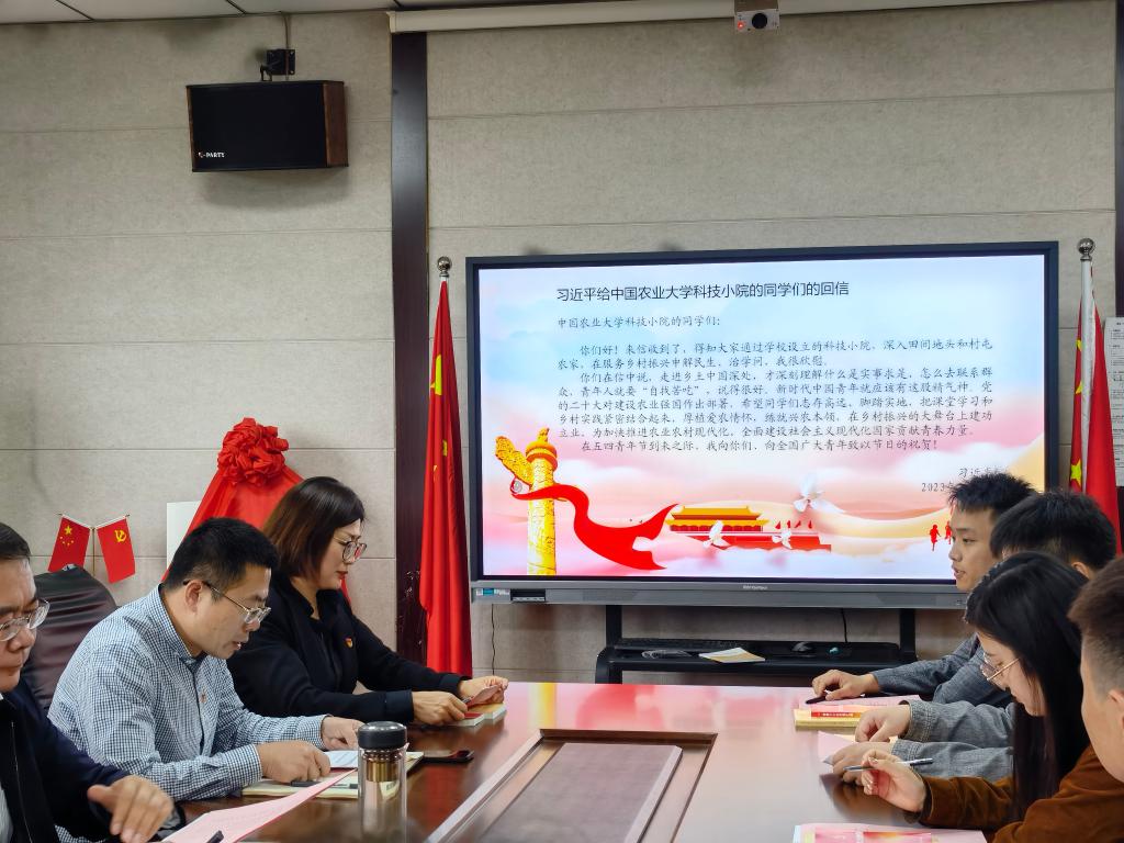会议第二项,康亚通带领大家学习了5月1日习近平总书记给中国农业大学科技小院学生的回信,习总书记在回信中强调,要厚植爱农情怀,练就兴农本领,在乡村振兴的大舞台上建功立业,为加快推进农业农村现代化、全面建设社会主义现代化国家贡献青春力量。康亚通希望大家响应总书记的号召,从实践、实习、支教等身边事做起,以实际行动贯彻党的二十大精神。