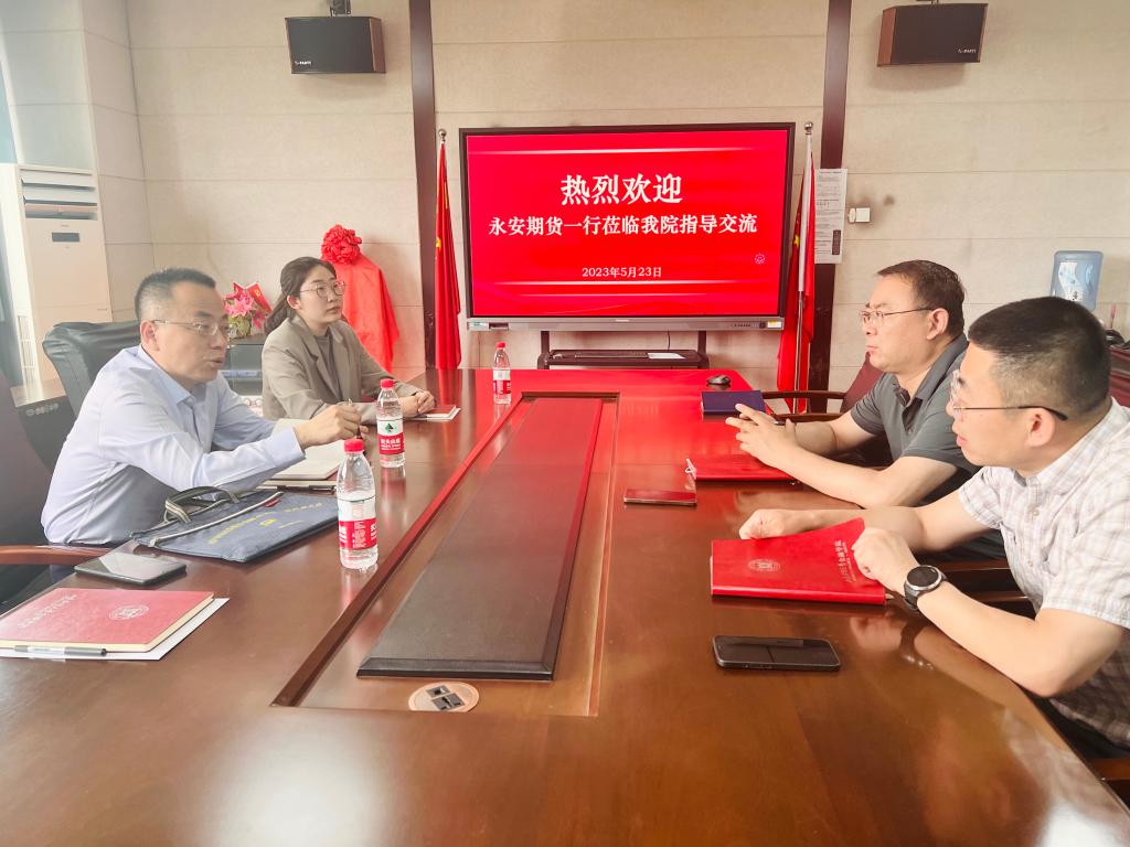 5月23日下午,永安期货山东分公司总经理李庆国一行来我院进行交流访问。yl88858永利集团党委书记吴红文、副书记康亚通、团委书记郭夕熙参加座谈。