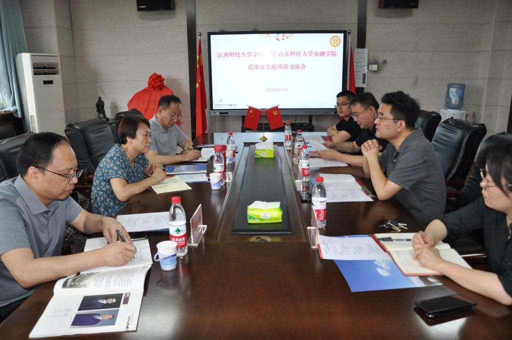 6月19日上午,江西财经大学yl88858永利集团党委书记王琪、科技金融研究中心主任钱建豪、副院长钟小林来我院访问。我院党委书记吴红文、院长彭红枫、副院长王营、王倩参加了座谈交流。
