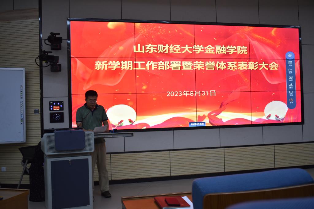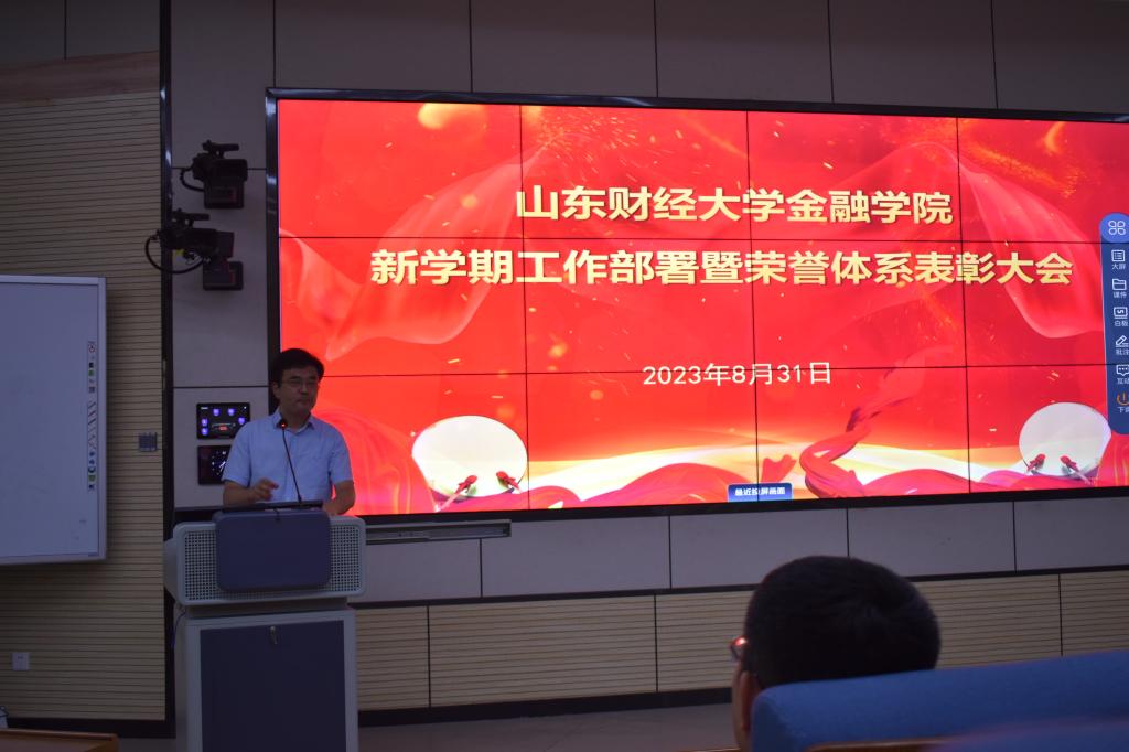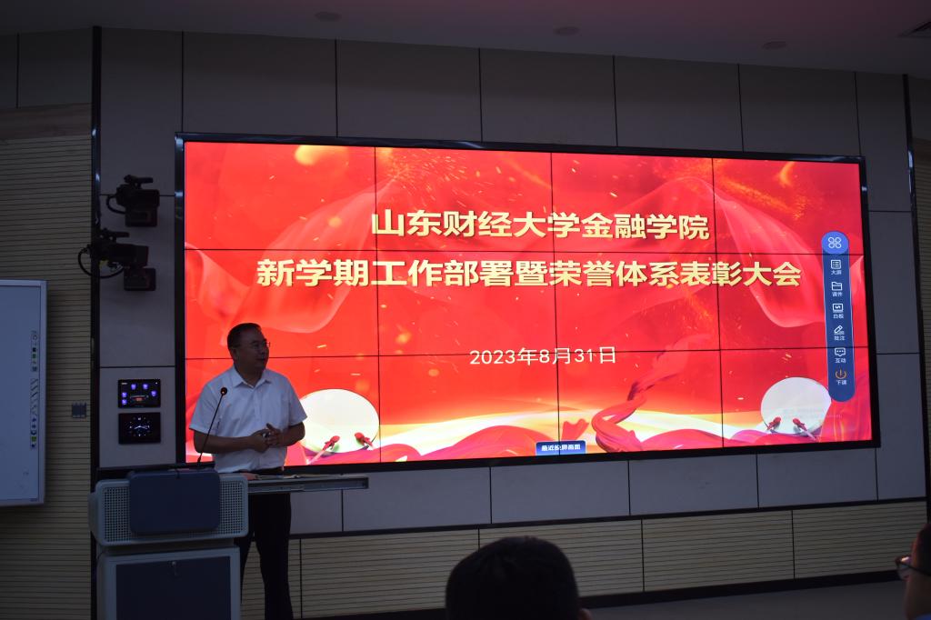 院长彭红枫针对过去一年学我院在各项工作中取得的成绩作了报告。他指出,在全院师生共同努力下,学院教育教学和科研均取得了骄人成绩,一是教育教学再创突破。学院金融学教师团队入选第三批“全国高校黄大年式教师团队”,我院《金融学》(线下)课程被教育部认定为第二批国家级一流本科课程,截至目前我院国家级课程已达4门;1位教师获得山东省第十届高校青年教师教学比赛优秀奖;2个案例入选全国金融教指委2023年度优秀案例库,1个项目获批教育部供需对接就业育人项目,1支队伍获第十三届“挑战杯”中国大学生创业计划竞赛全国决赛全国铜奖,1支队伍获得第五届“郑商所杯”全国大学生金融模拟大赛全国总决赛三等奖。二是科学研究全面开花。学院顺利完成山东省一流永利集团“811”项目申报工作;学院共发表学术论文143篇,其中在A1级以上期刊发表学术论文7篇;1人获国家自然科学基金青年项目资助,刘海明团队入选首批山东省哲学社会科学青年人才团队。三是学术交流搭台唱戏。过去的一年,学院共组织全国性学术会议2次,相继有东北财经大学yl88858永利集团、首都经贸大学yl88858永利集团、江西财经大学yl88858永利集团、山东理工大学经济学院等单位来我院访问交流,同时,我院还成为首批全国高校红色金融育人联盟会员单位。