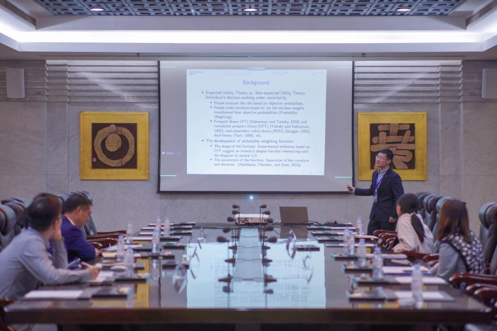 平行论坛5由温州大学教授胡振华和中南财经政法大学教授徐晟主持,围绕金融市场与投资行为主题展开探讨。中南财经政法大学皮永娟博士作了题为《证券投资者保护基金’制度对券商个体风险的影响》的报告。南京大学陈石博士作了题为《信息不对称、投资者策略与市场流动性:基于限价订单簿的一个理论模型》的报告。山东大学王霄霄博士作了题为《Infectious Disease Outbreaks and Disposition Effect of Mutual Fund Investors》的报告。浙江工商大学宋金泽作了题为《可转债泡沫与可转债市场投资者行为研究》的报告。河南财经政法大学刘佩文作了题为《Performance of Pair Trading in China's Stock Market》的报告。安徽大学李大海博士作了题为《连续时间下考虑多元化任务关系的风险投资动态激励机制研究》的报告。山东大学王远志博士作了题为《Harnessing the Words of Wisdom Fear and Treasury Risk Premia》的报告。首都经济贸易大学王延德博士作了题为《经济政策下不确定性对股票市场的非对称冲击及传导机制研究》的报告。参会者围绕上述报告展开了深入且富有建设性的讨论与交流。