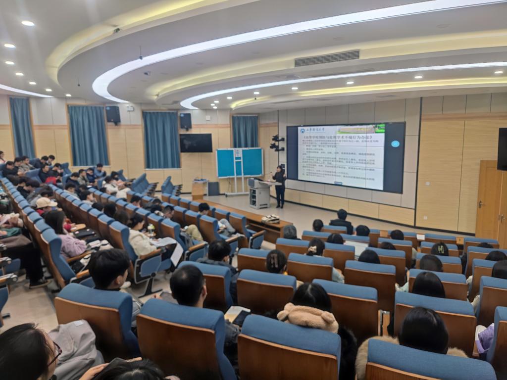 活动于下午14:30开始,历时近两个小时。首先,王丽萍副院长详细解读了与学位申请相关的制度文件,包括学术不端行为检测、论文隐名评阅、论文答辩、论文抽检等方面的规定。透过具体流程与规定的剖析,学生们更深入地了解了整个学术评审过程,为他们学位论文的修订提供了有益的经验。