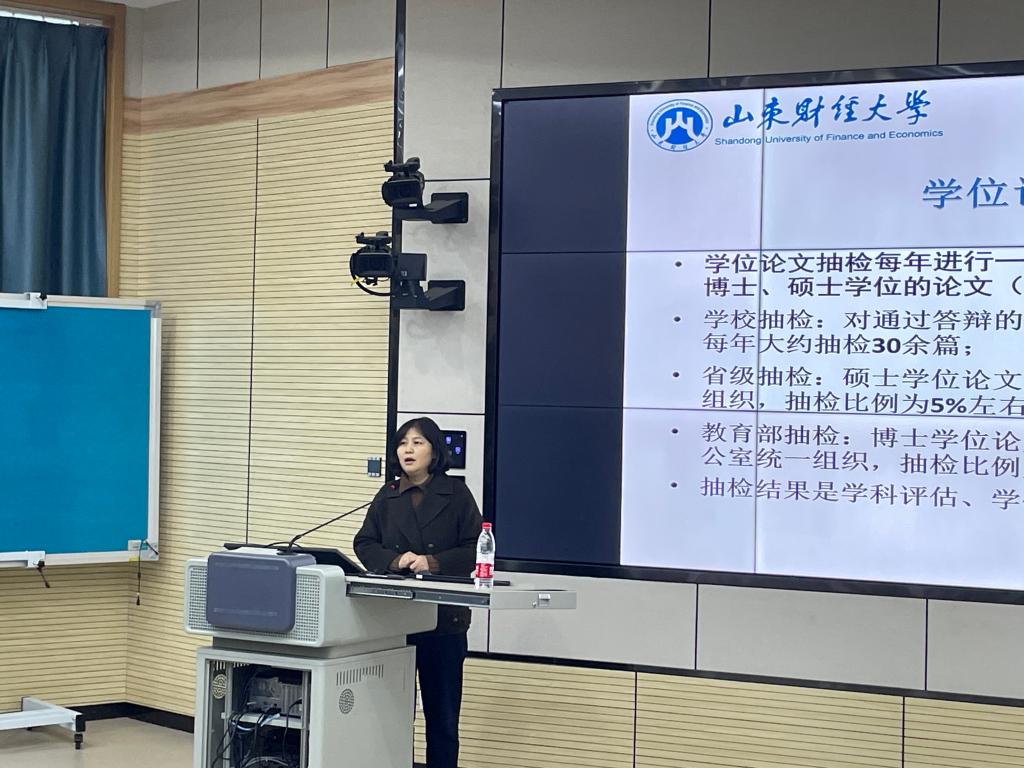 (通讯员 王玉琳 张发福)2023年11月16日下午,yl88858永利集团在舜耕校区第一阶梯教室举办了一场旨在提升写作水平与规范的学位论文写作培训活动,对2024届研究生学术规范水平进行了一次深度提升与指导。本次培训由永利集团研究生院王丽萍副院长主讲,yl88858永利集团肖祖沔副院长主持。