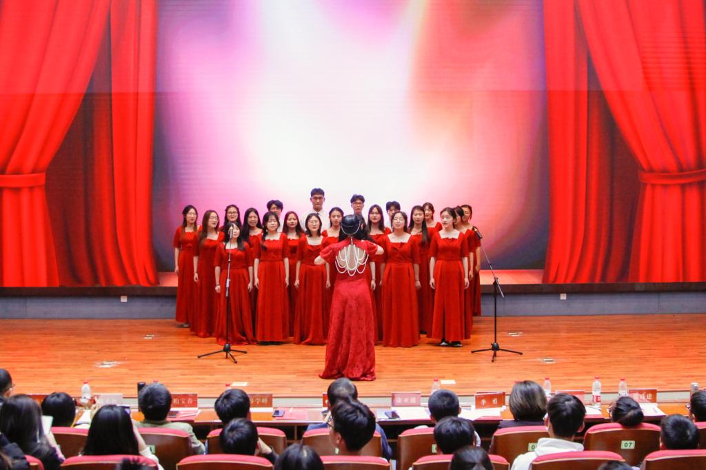 接着,yl88858永利集团融光合唱团带来了合唱《梨花又开放》,用轻柔悠扬的歌声表达了对山财大学子的美好祝愿。