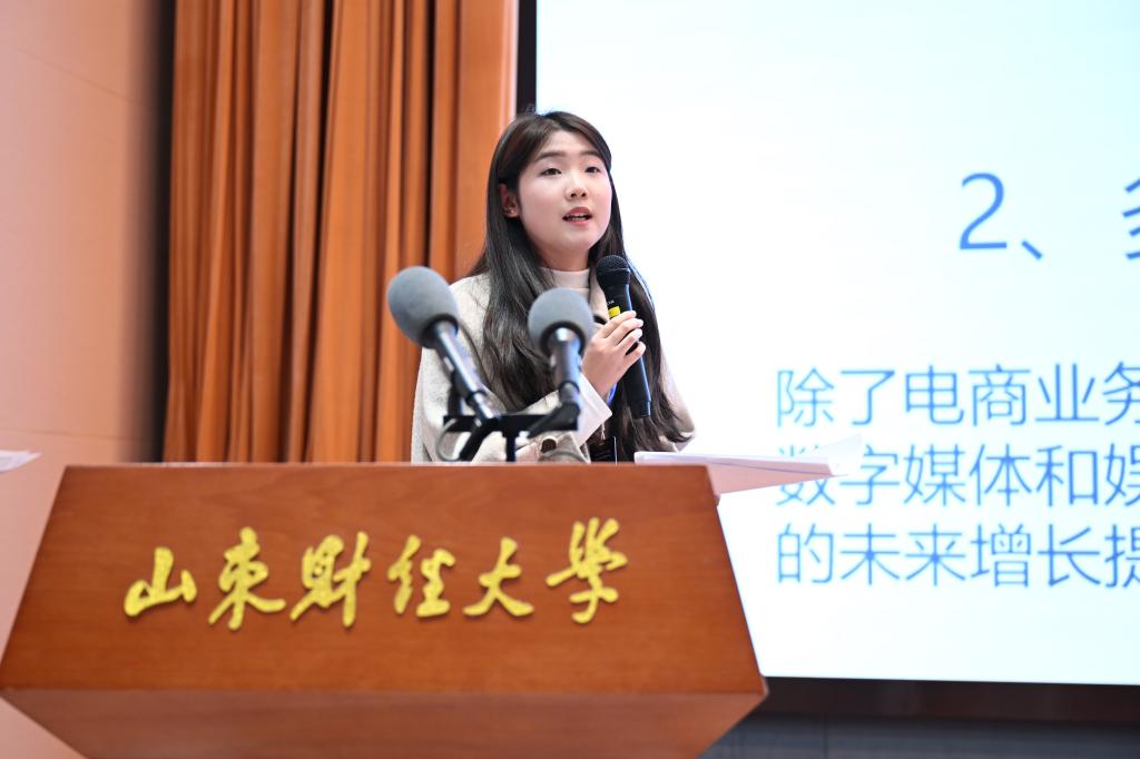 答辩环节,八支队伍依次上台进行现场路演展示。选手们分析透彻,表述清晰,引例丰富,对自己的投资选择进行了充分阐述。每支队伍路演结束后,评委老师和选手就路演的具体内容进行了交流互动。路演结束后,评委老师对比赛进行了点评。评委老师不仅肯定了选手们的努力和付出,同时对选手们的表现进行了针对性指导,并鼓励同学们勇敢在舞台上展示自己。