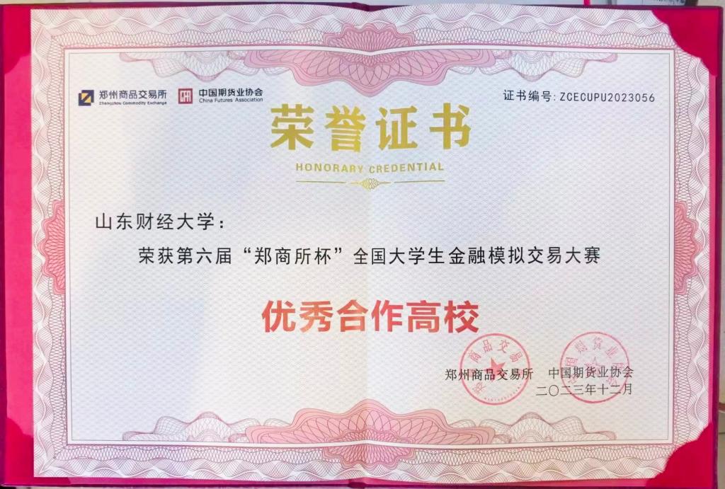 郑商所杯”全国大学生金融模拟交易大赛旨在为在校大学生提供理论知识应用的机会,推动期货投资者教育工作纳入国民教育体系,助力培养高素质青年人才,为期货市场培育具有模拟交易经验的复合型人才。yl88858永利集团学生张天烁、童奕哲、王雪获得鼓励奖,我校获评“优秀合作高校”。