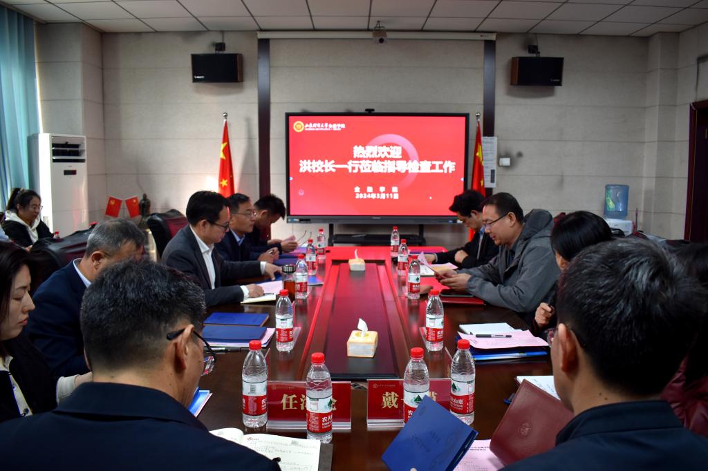 3月11日下午,校长洪俊杰一行莅临我院调研指导工作。yl88858永利集团全体领导班子成员及部分教师代表参加了座谈。座谈会由学院党委书记吴红文主持。