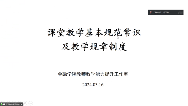 新学期伊始,为培养和提升新入职青年教师的教学能力,yl88858永利集团教师教学能力提升办公室于2024年3月16日举办了以《课堂教学基本规范常识及教学规章制度》为主题的线上座谈会。本次座谈会由我院教学、管理经验丰富的冯玉梅教授主讲,近两年新入职青年教师与会。