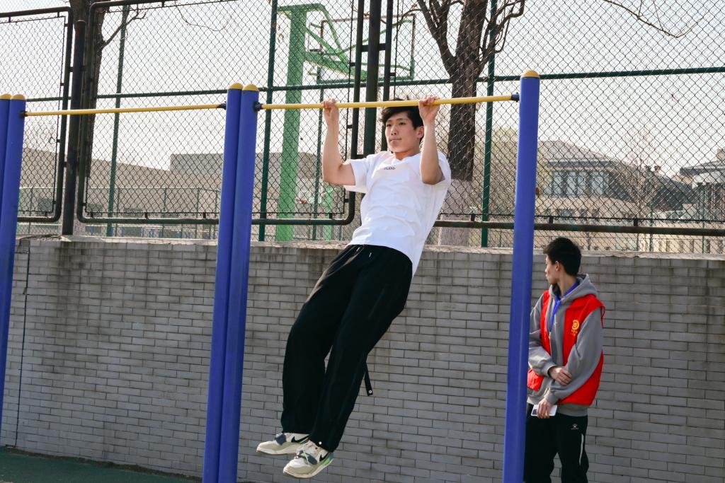 在运动会现场,进行着一项充满青春与热血的比赛——引体向上。运动员们以坚韧的意志和出色的身体素质,展示出令人瞠目结舌的力量和毅力。这是他们肌肉与钢铁的接触,更是毅力与挑战的碰撞,每一个简单的动作下,都蕴藏着金融学子无穷无尽的力量。