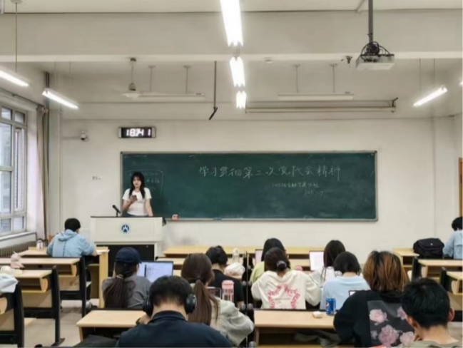 2023级金融学类4班通过主题班会让同学们对学校第二次党代会确立的“一一三九”发展思路有了更清晰的认识,同学们纷纷表示将会带着精益求精的态度来求学,努力汲取知识,提升能力,争创“三优班级”。