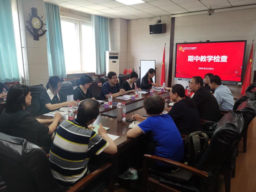 王倩和肖祖沔根据学校《关于开展2023-2024学年第二学期期中教学检查工作的通知》要求,汇报了学院期中教学检查自查情况。检查组认真检查了学院各项教学档案材料,抽查了2023-2024秋季学期期末考试的本科试卷和研究生试卷和2023届本科毕业论文和研究生学位论文。督导、职能部门与学院教学管理人员、专任教师进行了交流座谈,就学院督导工作情况、课堂教学组织、基层教学教研、教师培训体制机制建立、教师荣誉体系建设等问题听取了老师们的意见和建议。