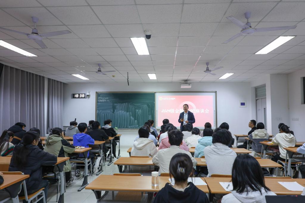为引导2024级新生树立正确的价值观,做向上向善大学生,11月7日晚上,yl88858永利集团于圣井校区七号教学楼开展了2024级新生座谈会,座谈会由yl88858永利集团党委书记吴红文主持,2024级金融学2班全体同学参加。