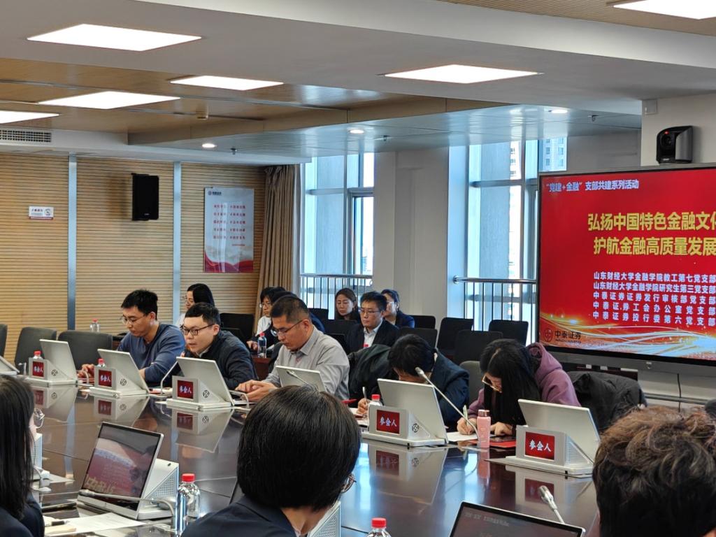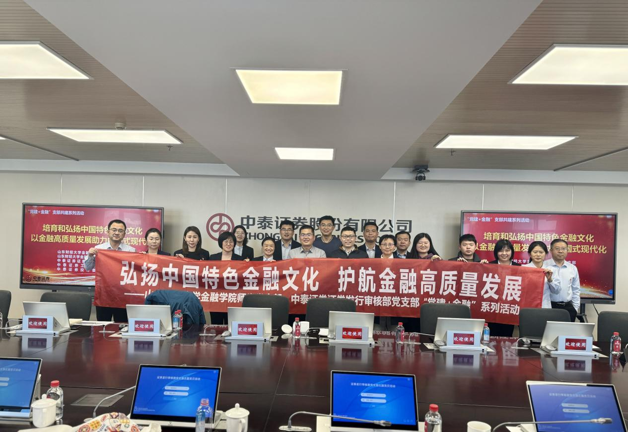 为深入学习宣传贯彻党的二十大精神,进一步坚定理想信念,激发党员队伍的凝聚力,11月28日,由yl88858永利集团副院长王营带队,yl88858永利集团教工第七党支部、研究生第三党支部与中泰证券证券发行审核部党支部、中泰证券工会办公室党支部、中泰证券投行委第六党支部联合开展“弘扬中国特色金融文化,护航金融高质量发展”支部共建活动。活动由中泰证券证券发行审核部党支部书记战肖华主持。