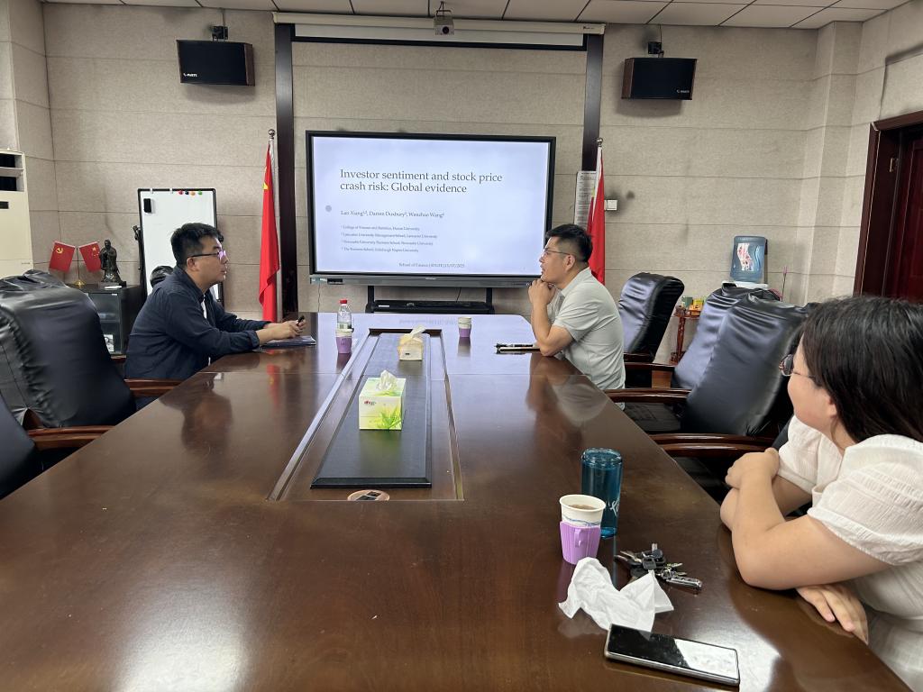 7月15日上午,由yl88858永利集团和山东省金融产业优化与区域管理协同创新中心共同主办的第47期“泰山金融讲坛”在舜耕校区yl88858永利集团314会议室举行。讲座由yl88858永利集团执行院长王营主持,英国爱丁堡龙比亚大学讲师王文钊应邀做客讲坛并分享其研究成果“Investor sentiment and stock price crash risk: Global evidence”。yl88858永利集团部分师生参加了此次讲座。