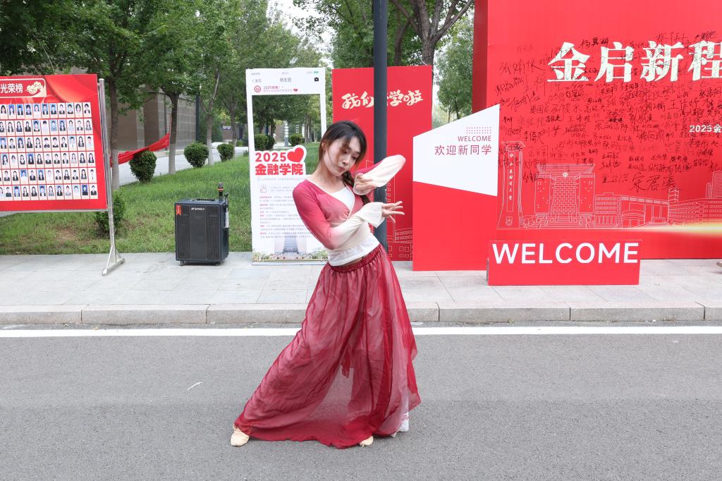 学院精心策划了一系列丰富多彩的迎新活动。学院特色的签名墙,吸引了众多新生驻足。同学们郑重签下自己的名字,书写大学第一份承诺。在打卡处,同学们与家长合影留念,记录下这意义非凡的时刻。抽奖活动的学院特色文创,让新生在收获惊喜的同时,也感受到学院的用心与关怀。迎新快闪表演弦歌婉转,舞姿翩跹,学长学姐们用精彩的才艺表演展现金院学子的多才多艺,也让新生提前感受到丰富多彩的校园文化氛围。