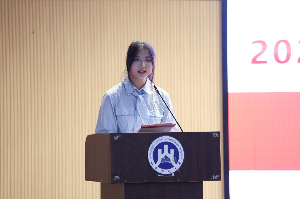 随后,2025级本科新生代表刘昕蕊同学发言。她表达了对大学生活的憧憬与期待,并表示将尽快适应新环境,努力学习、全面发展,怀抱坚定信念,志存高远,以积极心态参与社会实践活动,将自身行动落实到每一步,书写人生精彩华章。