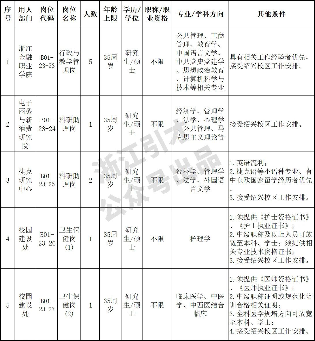 浙江金融职业学院 (www.zfc.edu.cn,“师资队伍”-“人才招聘”)。