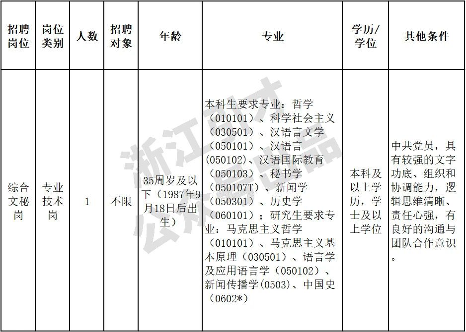 本次公开招聘1个岗位共1人,具体要求详见招聘计划表。