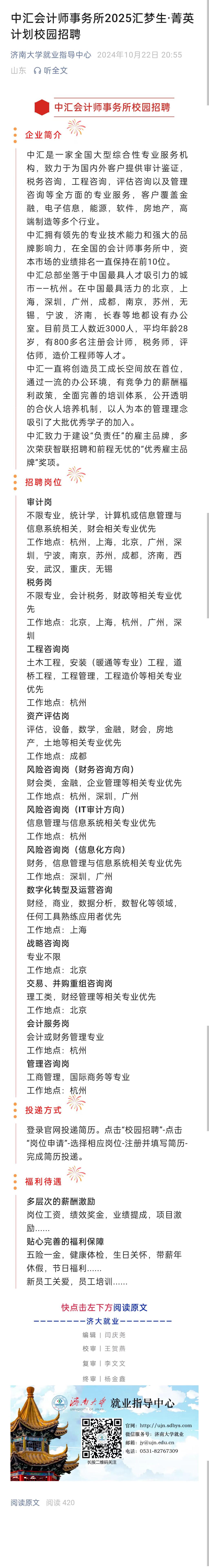 中汇会计师事务所2025汇梦生·菁英计划校园招聘