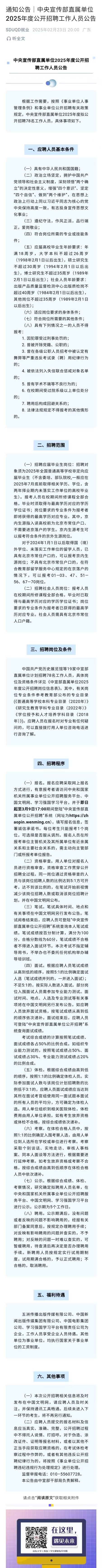 通知公告|中央宣传部直属单位2025年度公开招聘工作人员公告